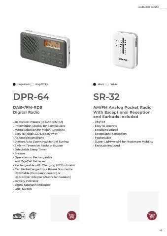 • Station Auto Scanning/Manual Tuning • Super Lightweight for Maximum Mobility