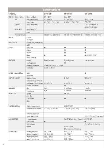 Memory Presets 10 (5 FM / 5 DAB+) 30 (15 FM / 15 DAB+) 40 (20 AM / 20 FM)