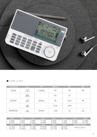 • Fine Tuning & Quick Shift Tuning Controls Bandwidth icon FM MW/LW SW AIR