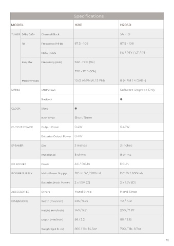 Memory Presets 10 (5 AM/MW / 5 FM) 8 (4 FM / 4 DAB+)